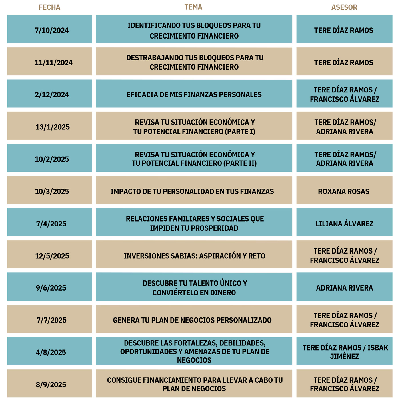 Diplomado On-Line "Trabaja Tus Emociones y Libera Tu Potencial Financiero" DIPLOMADO TRABAJA TUS EMOCIONES Y LIBERA TU POTENCIAL FINANCIERO 2024 - 2025 Comienza: Octubre 7, 2024 Horario: De 18:00 hrs a 22:00 hrs. Una vez al mes por 12 meses (siempre en lunes y siempre de 18 a 22 hrs). Diplomado en línea Grupo Quinta Generación - Octubre 2024 a Septiembre 2025 REGÍSTRATE Planes de pago Encuentra El Que Mejor Se Adapte A Ti PROMOCIÓN $13,000M.N. incluye12 MÓDULOS por medio de transferencia, en una sola exhibición, hasta el 20 DE septiembre DEL 2024 INSCRIBIRME Y PAGAR Diplomado completo $15,000M.N. incluye12 MÓDULOS UNA INVERSIÓN DE SOLO $1,250 MENSUALES QUE CAMBIA TU vIDA FACILIDAD DE PAGO A 3 ó 6 MESES SIN INTERESes INSCRIBIRME Y PAGAR trimestre $4,000M.N + Inscripción $2,000 INSCRIBIRME Y PAGAR Medio diplomadO $8,000M.N Incluye 6 meses INSCRIBIRME Y PAGAR